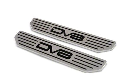 Durable Construction. These Rear Door Sill Plates with DV8 logo are manufactured from CNC-machined billet aluminum to withstand all manner of abuse while still retaining their good looks. The machined grooves provide an anti-slip surface.