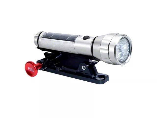 Optimized Utility. For emergencies or cruising on the dark roads, this DV8 Offroad Quick Release Flashlight Mount is sure to make accessing your emergency light more convenient. Made from strong aluminum, it offers support for most aftermarket flashlights with a cylindrical body and features a quick-release button so you can have it on hand in moments.
