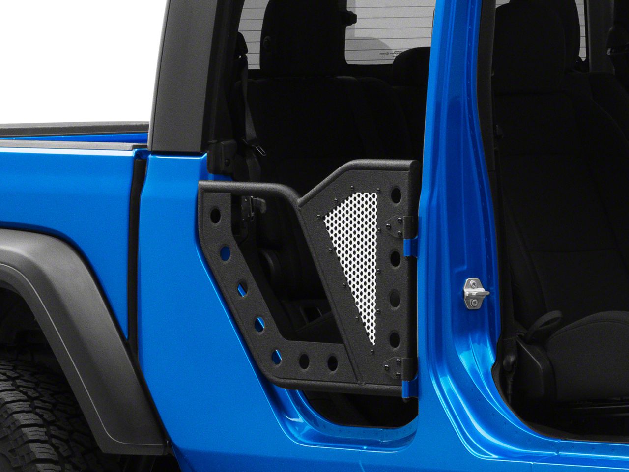 Application. This pair of Rear DV8 Offroad Rock Doors is designed for installation on all the 2020-2026 Jeep Gladiator JT models. The driver and passenger side doors are included.