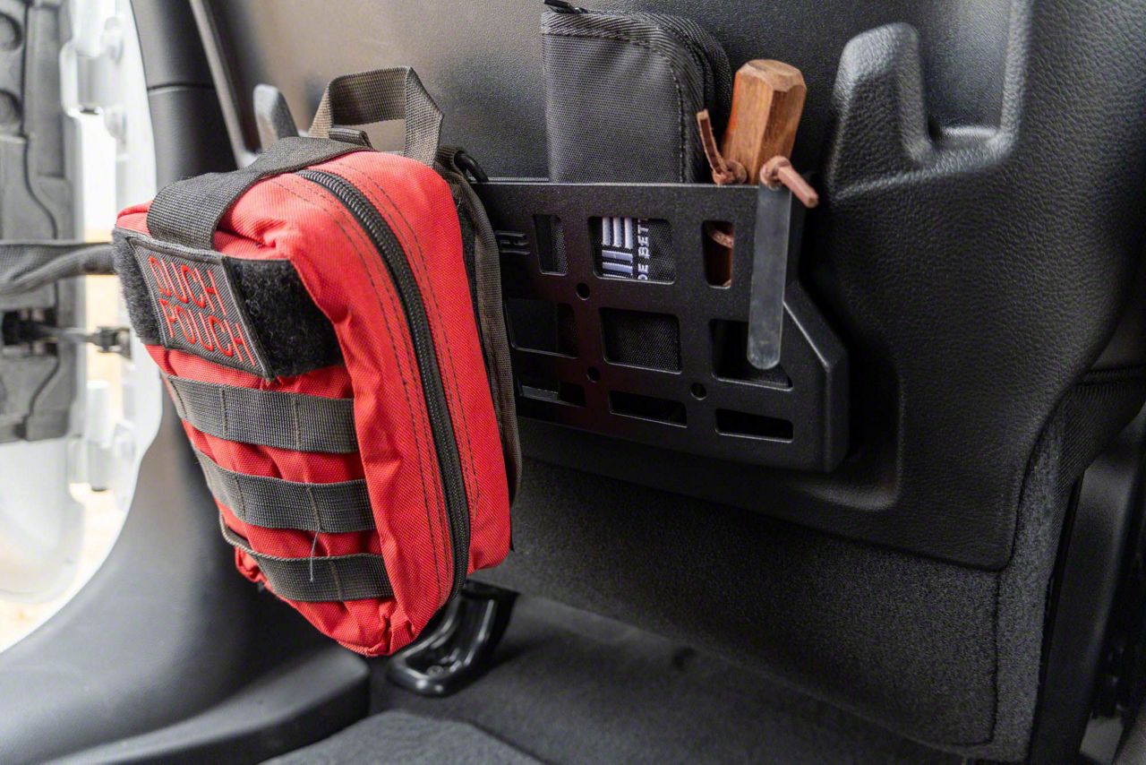 Interior Storage Upgrade. The DV8 Offroad Seat Back MOLLE Pockets offer a rugged and organized solution for maximizing storage in your 2020-2026 Jeep Gladiator JT Launch Edition, Mojave, and Rubicon models. Replacing the factory seat back netting, these steel panels provide a secure platform for attaching gear, tools, and pouches using MOLLE-compatible systems.
