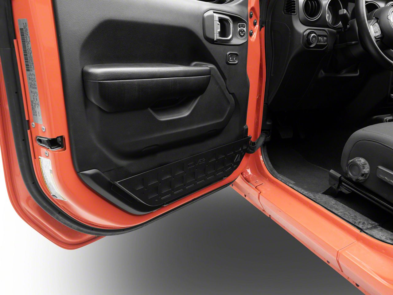 Construction and Features. These panels feature a slim design and a textured black finish, ensuring durability and a sleek, rugged appearance. They are crafted for compatibility with MOLLE-style accessories, providing a customizable storage system that’s easy to adapt to your needs. Please note that these panels are incompatible with stock power front seats.