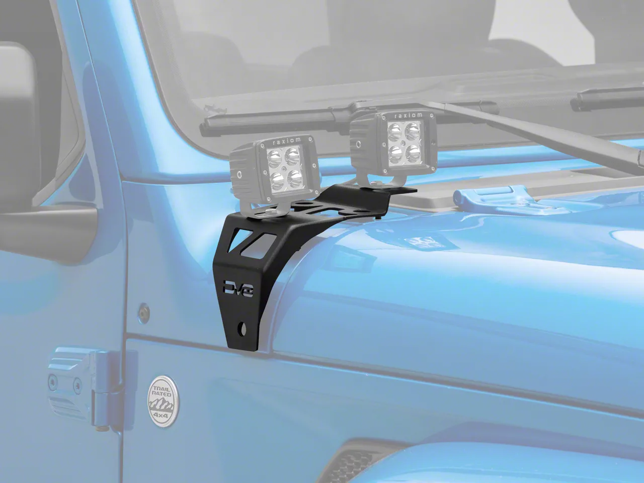 Application. The DV8 Offroad A-Pillar Dual Pod Light Mounts fit all 2018-2026 Jeep Wrangler JL models except 4xe models.