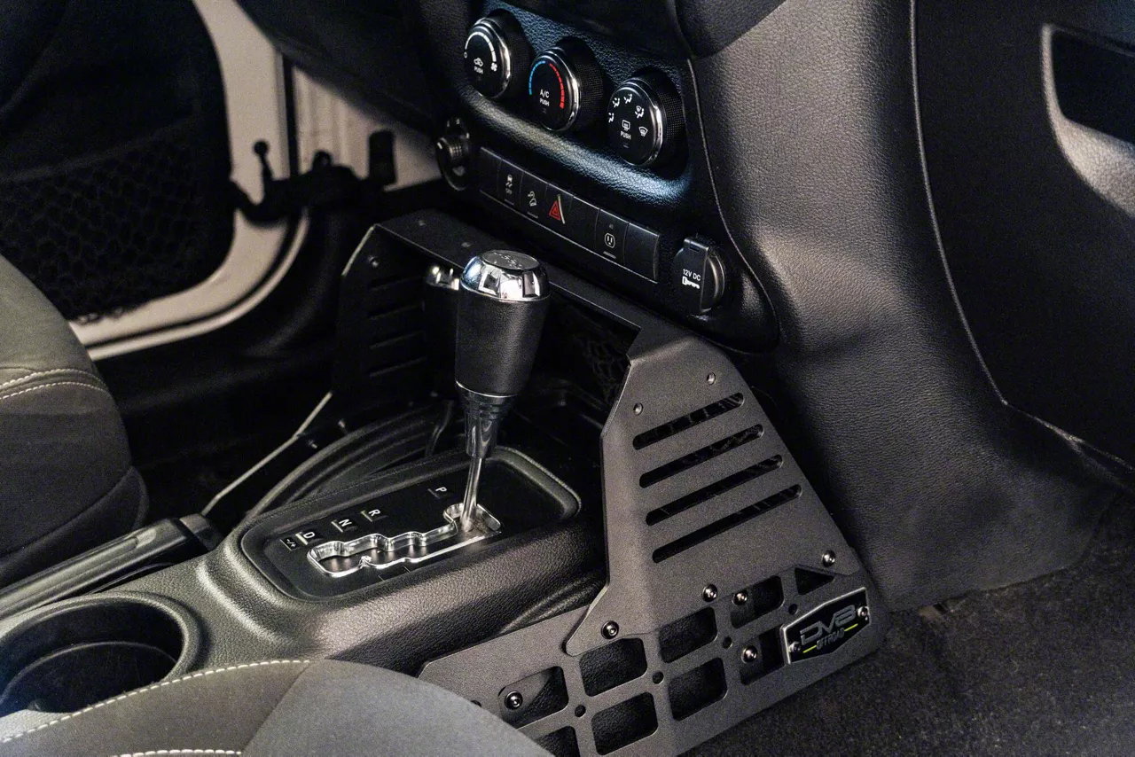 Organized and Accessible. The DV8 Offroad Center Console MOLLE Panels and Device Bridge is a versatile and practical enhancement for your Jeep Wrangler JK models. Designed to maximize the utility of the center console, this accessory allows for secure and organized mounting of devices such as phones, radios, GPS units, and tablets, enhancing accessibility while on the move.