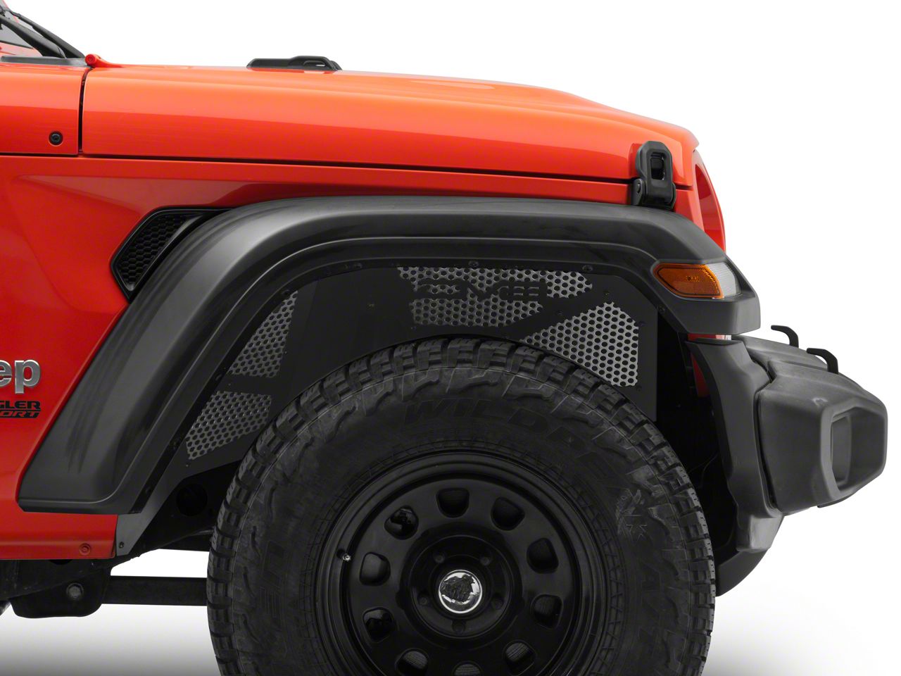 Application. These DV8 Offroad Front Aluminum Inner Fenders fit all 2018-2026 Jeep Wrangler JL models.
