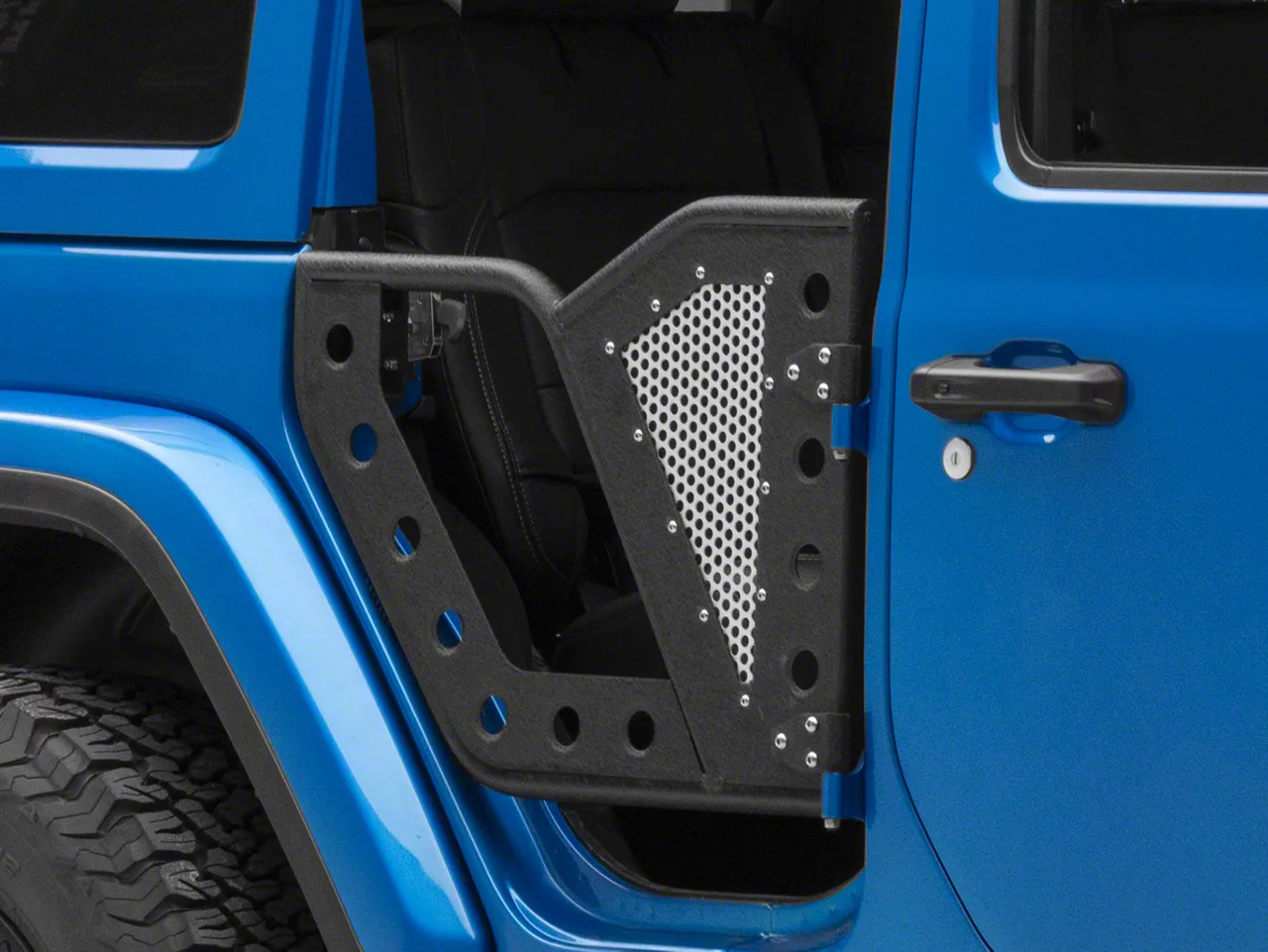 Application. The DV8 Off-Road Rock Doors; Rear are manufactured to be a direct fit for all 2018-2026 Jeep Wrangler JL 4 Door models.