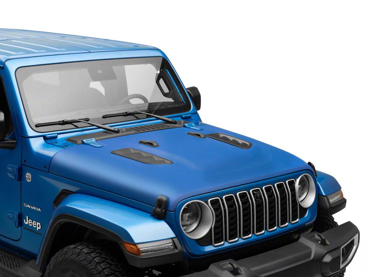 Enhanced Performance and Distinctive Style. Add some strong and appealingly dynamic contours to your Jeep Wrangler JL by using the DV8 Off-Road Rubicon Replica Hood; Unpainted. This high-strength hood features fully functional cooling vents to keep your engine running at its optimal temperature. This design also facilitates the efficient flow of the cold air into the factory air box location for improved breathing dynamics.