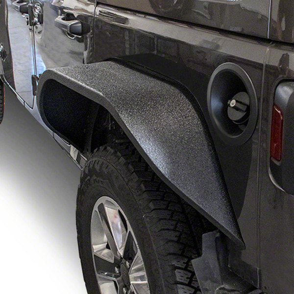 Application. These Wide Flat Fender Flares from DV8 Offroad fit 2018-2024 Jeep Wrangler JLs.