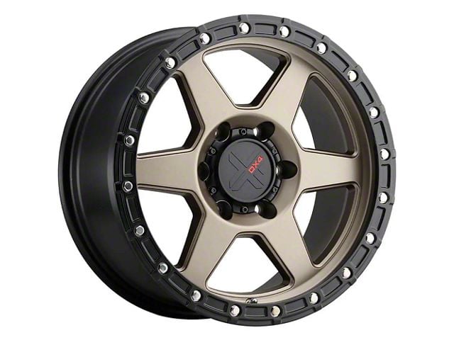 DX4 Wheels RECON Matte Bronze with Black Ring 6-Lug Wheel; 16x8; -6mm Offset showcases an exquisite blend of elegance and charisma, perfect for any vehicle aiming for that standout appearance. With its unique design, it not only amplifies the aesthetic appeal of your ride but also complements various vehicle styles. This wheel, stemming from the legacy of DX4 Wheels, embodies a premium look that's hard to resist.