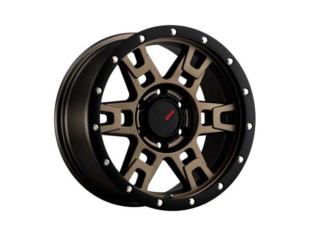 DX4 Wheels TERRAIN Matte Bronze with Black Ring 6-Lug Wheel; 17x8.5; 10mm Offset showcases an exquisite blend of elegance and charisma, perfect for any vehicle aiming for that standout appearance. With its unique design, it not only amplifies the aesthetic appeal of your ride but also complements various vehicle styles. This wheel, stemming from the legacy of DX4 Wheels, embodies a premium look that's hard to resist.