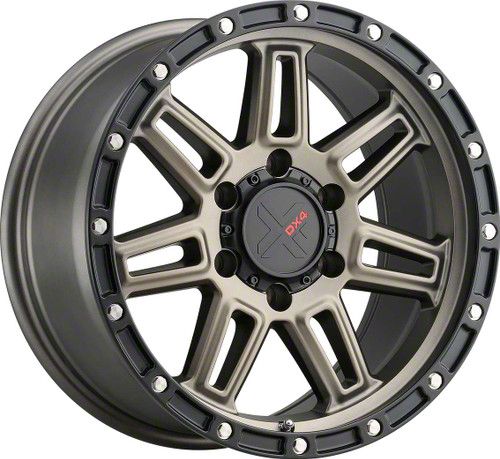 Application. This DX4 Wheels REBEL Matte Bronze with Black Ring Wheel; 18x9 with a backspace of nan and bolt pattern of 5 x 127mm (5 x 5-Inch) ensures optimal alignment, unparalleled driving stability, and an impeccable fit with your vehicle. It is designed to fit the 2020-2026 Jeep Gladiator JT models. Sold individually.