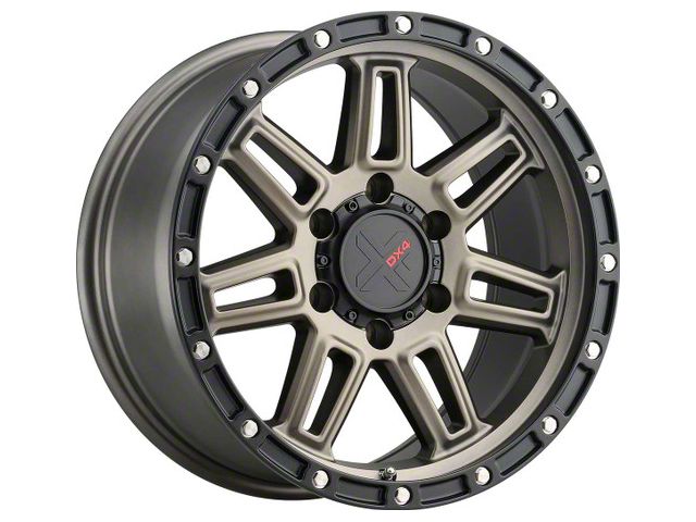 DX4 Wheels REBEL Matte Bronze with Black Ring Wheel; 18x9 showcases an exquisite blend of elegance and charisma, perfect for any vehicle aiming for that standout appearance. With its unique design, it not only amplifies the aesthetic appeal of your ride but also complements various vehicle styles. This wheel, stemming from the legacy of DX4 Wheels, embodies a premium look that's hard to resist.