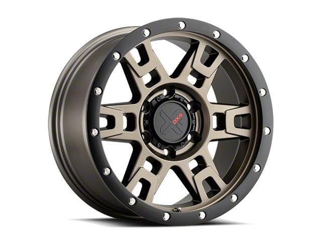 DX4 Wheels TERRAIN Matte Bronze with Black Ring Wheel; 17x8.5 exudes a captivating aesthetic appeal that seamlessly complements various vehicle styles. The craftsmanship of DX4 Wheels ensures a robust and premium feel, making it a standout choice for discerning drivers.