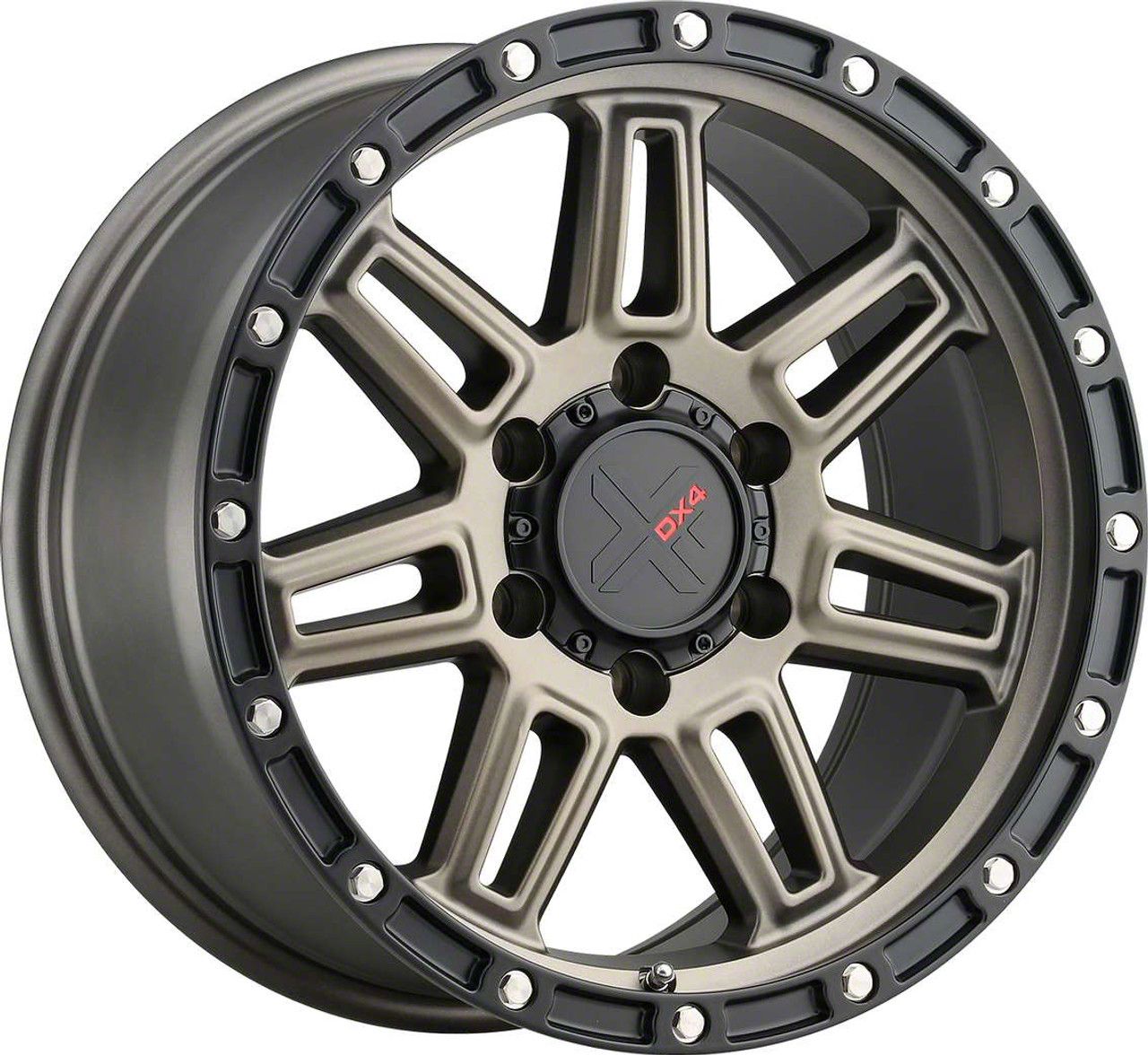 Application. The DX4 Wheels REBEL Matte Bronze with Black Ring Wheel; 17x8.5 fits the 2018-2026 Jeep Wrangler JL.