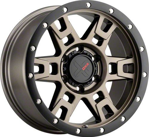 The 20x9 DX4 Wheels Terrain Matte Bronze with Black Ring Wheel is completed in a high quality bronze finish for an impressive appearance that will make others green with envy.