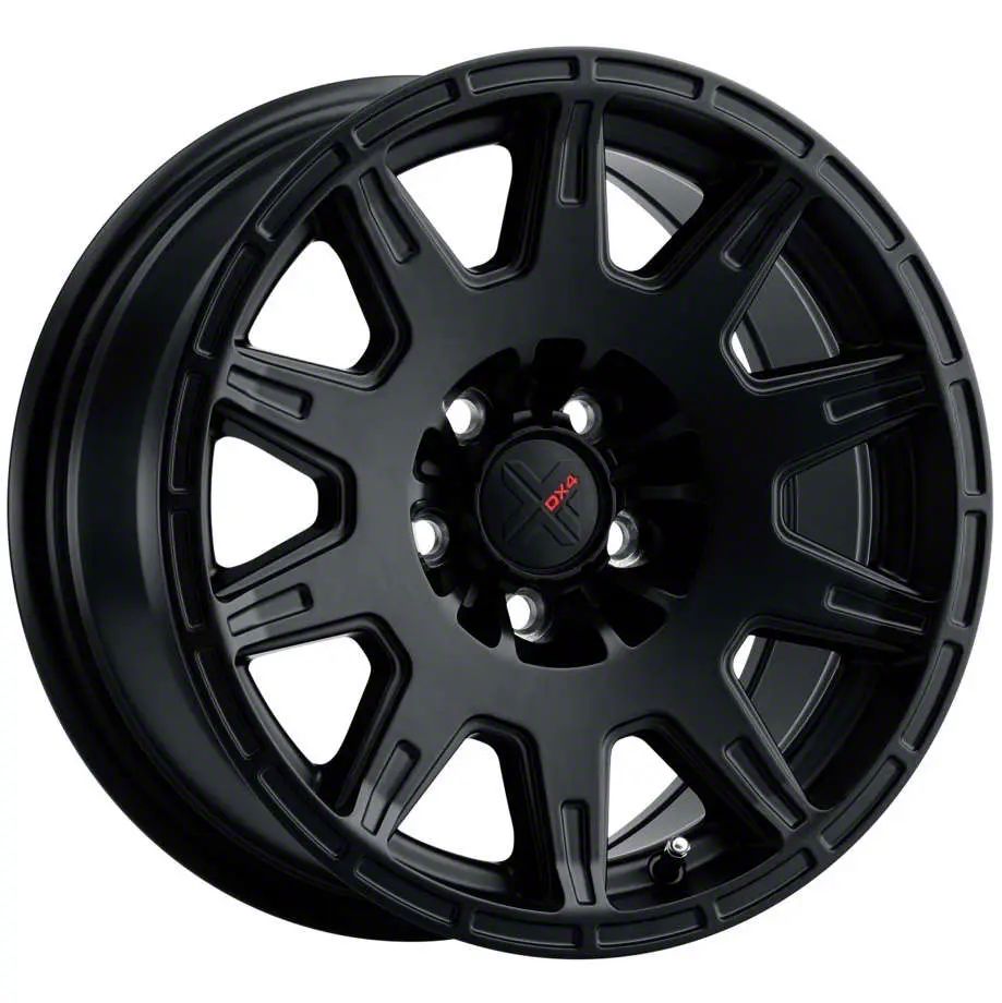 The 17x8 DX4 Wheels X-TRAIL Flat Black Wheel; 17x8 is completed in a high-quality flat black finish that will make others green with envy. For added protection and good looks, this wheel features a durable clear coat that can withstand the hazards of daily driving.