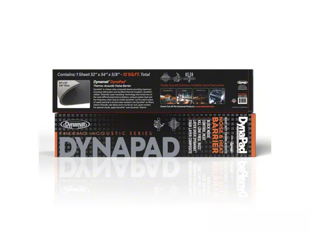 Premium Noise and Heat Barrier. The Dynamat DynaPad Insulating Noise and Heat Barrier (12-Square Foot) is designed to reduce unwanted road noise and block heat transfer in your vehicle. This product uses a multi-layer barrier to control both sound and temperature, making rides more comfortable and quieter. It is essential for automotive enthusiasts who want to enhance driving quality and protect cabin environments from excessive heat and noise.