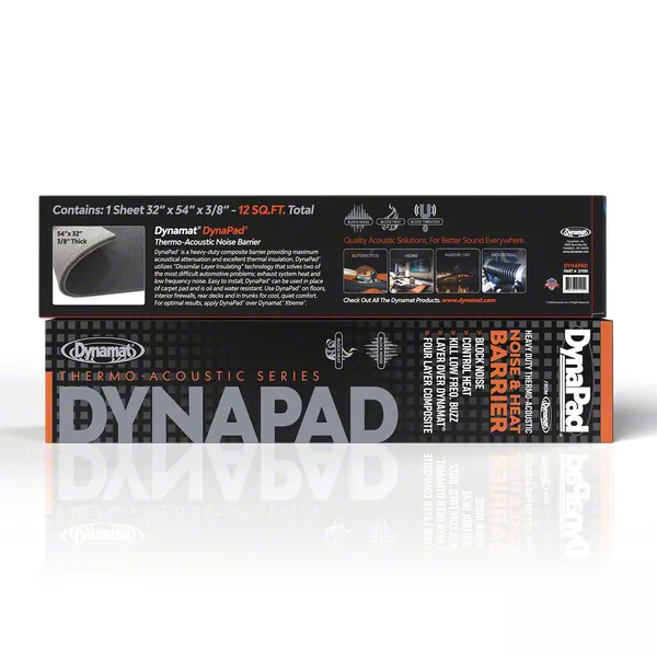 Premium Noise and Heat Barrier. The Dynamat DynaPad Insulating Noise and Heat Barrier (12-Square Foot) is designed to reduce unwanted road noise and block heat transfer in your vehicle. This product uses a multi-layer barrier to control both sound and temperature, making rides more comfortable and quieter. It is essential for automotive enthusiasts who want to enhance driving quality and protect cabin environments from excessive heat and noise.
