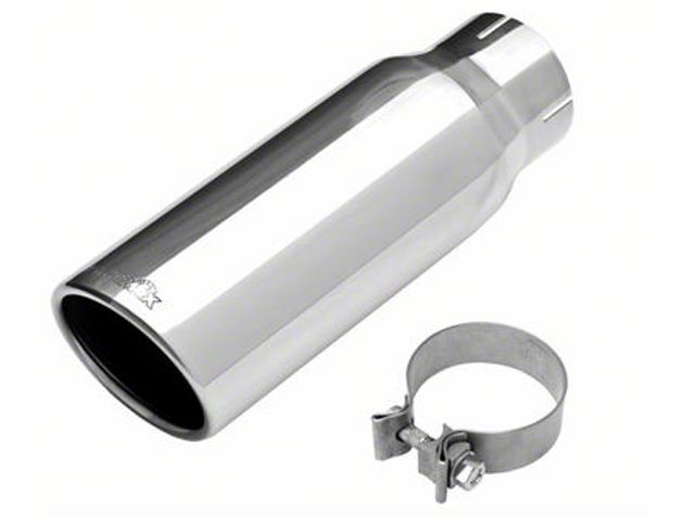 Application. This Dynomax Single Wall Exhaust Tip (4-Inch, Polished, Fits 3-Inch Tailpipe) fits universally and requires minimal adjustments.