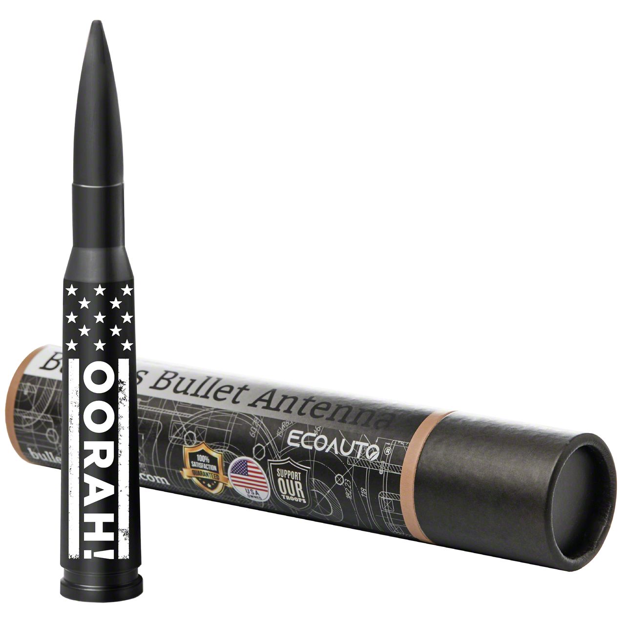 Construction and Appearance. Crafted from military-grade 6061 billet aluminum, the EcoAuto Bullet Antenna boasts a hard anodized finish for rust and corrosion resistance. Its sleek black OORAH-inspired design adds a touch of rugged elegance to your vehicle.