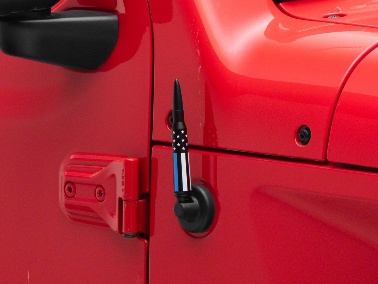 Application. This EcoAuto Bullet Antenna; Support Blue is designed to fit 2007-2023 Jeep Wrangler JK and JL Models.