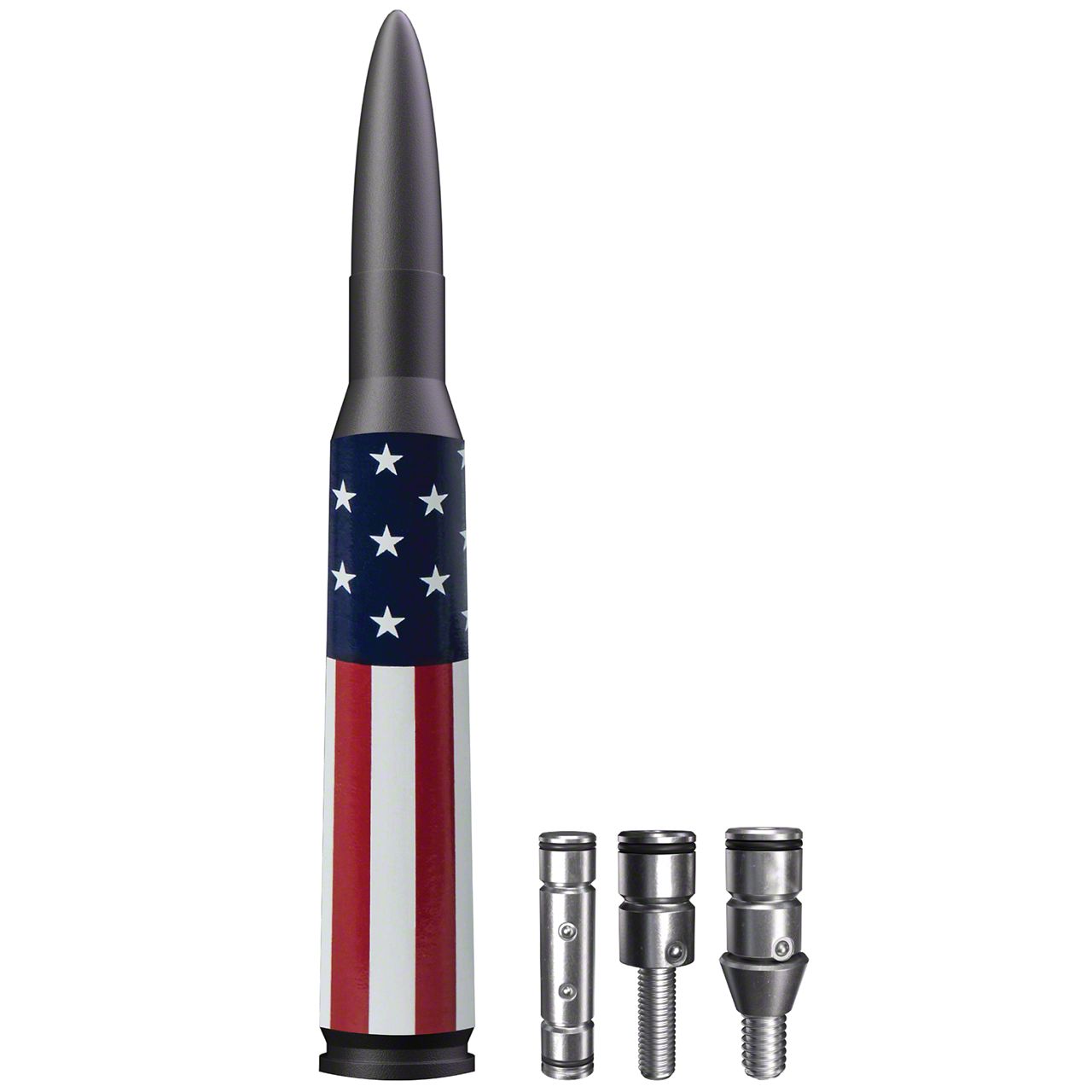 Upgrade Your Jeep’s Look with a Patriotic Touch. The Easylock Bullet Antenna provides a stylish and functional upgrade, replacing your factory antenna with a compact, durable, and eye-catching design. Featuring an engraved American flag, this antenna adds a bold statement while maintaining strong AM/FM radio reception.