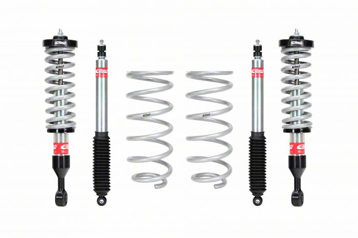 Advanced Suspension System. The Eibach Pro-Truck Coil-Over Kit Stage 2 enhances off-road capability by combining threaded height-adjustable coilovers with sport shocks, allowing fine-tuning of ride height to improve vehicle clearance and handling, especially under off-road driving conditions.