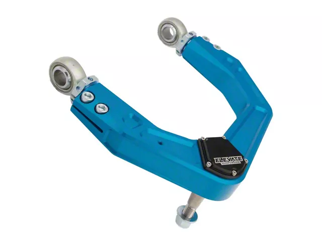 High-Quality Upgrade. The Elevate Suspension Billet Uniball Upper Control Arms is a pair of premium solutions designed to enhance your vehicle's performance. Featuring better angularity, these control arms allow for increased wheel travel, enabling a smoother ride even in challenging terrains. They also facilitate proper alignment, promoting optimal handling and tire wear. With improved coil spring clearance at full droop, these control arms prevent any interference, ensuring seamless suspension movement.