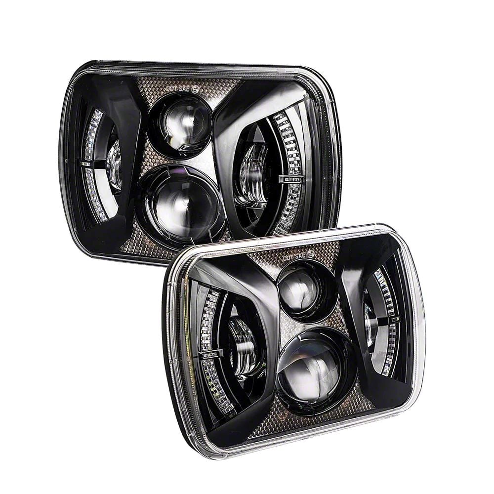 Modern Lighting. Cruise with a bright view of the road or terrain with this Empire Offroad LED 5x7-Inch Godzilla Series LED Headlights; Black Housing; Clear Lens for your Jeep Wrangler. Sporting a strong design and bright power-efficient LEDs, it offers stable illumination and consistent performance on the road.