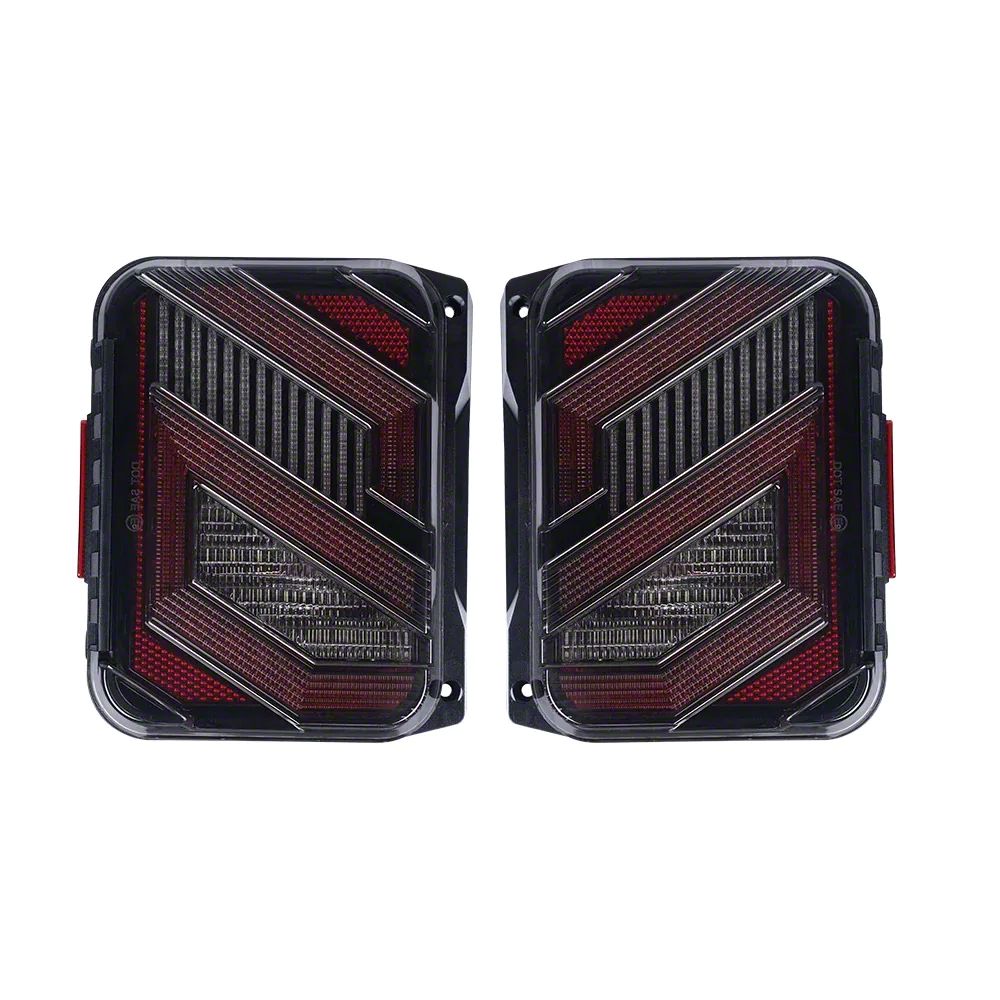 Modern Lamp Styling. Rock a sleeker appearance for your ride with this Empire Offroad LED Zues Series LED Tail Lights; Black Housing; Red Lens on your Jeep Wrangler. Sporting a clean design and a hard structure, it adds a sporty low-profile look to your rear end as well as reliable lighting for road safety.