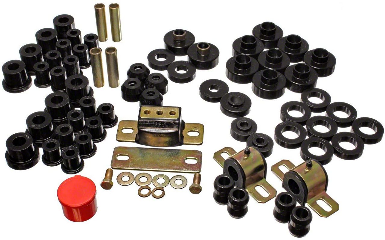 Performance Durability with Hyper-Flex Polyurethane. Crafted from Energy’s Hyper-Flex™ polyurethane, this Complete Suspension Bushing Kit; Black delivers exceptional resistance to oil, road grime, UV exposure, and high-flex environments. It maintains rigidity under stress, reducing wheel hop and enhancing handling stability—on-road and off-road.