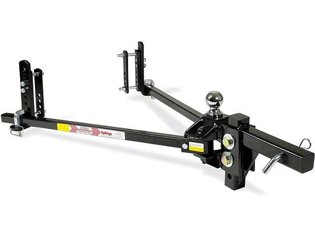 Heavy-Duty Build. This weight distribution hitch is made from steel for a high gross trailer weight capacity of 12,000 pounds and a tongue weight capacity of 1,200 pounds. The smooth black finish ensures a neat rear appearance of your vehicle and protects the hitch from rusting. An adjustable shank provides the necessary drop or rise.