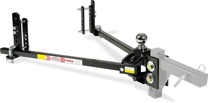 4-Point Sway Control. In addition, this weight distribution hitch features 4-point sway control using easy-to-use snap-up brackets that act as a brake and keep trailers in line with your Wrangler.