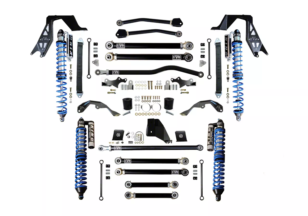 Application. The EVO Manufacturing 3 to 5-Inch Enforcer PRO Stage 4 Suspension Lift Kit with King Compression Adjuster Coil-Overs is compatible with all 2020-2026 3.6L Jeep Gladiator JT models.