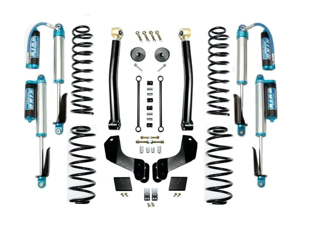 Superior Heat Dissipation and Consistent Damping. At the heart of this EVO Manufacturing 2.50-Inch Enforcer Stage 2 Overland Suspension Lift Kit are premium King 2.5 Remote Reservoir Shocks, equipped with external compression adjusters for dialed-in control. Designed to perform in extreme off-road scenarios while keeping your rig civilized on the highway, these shocks deliver superior heat dissipation and consistent damping across a variety of terrains and driving styles.