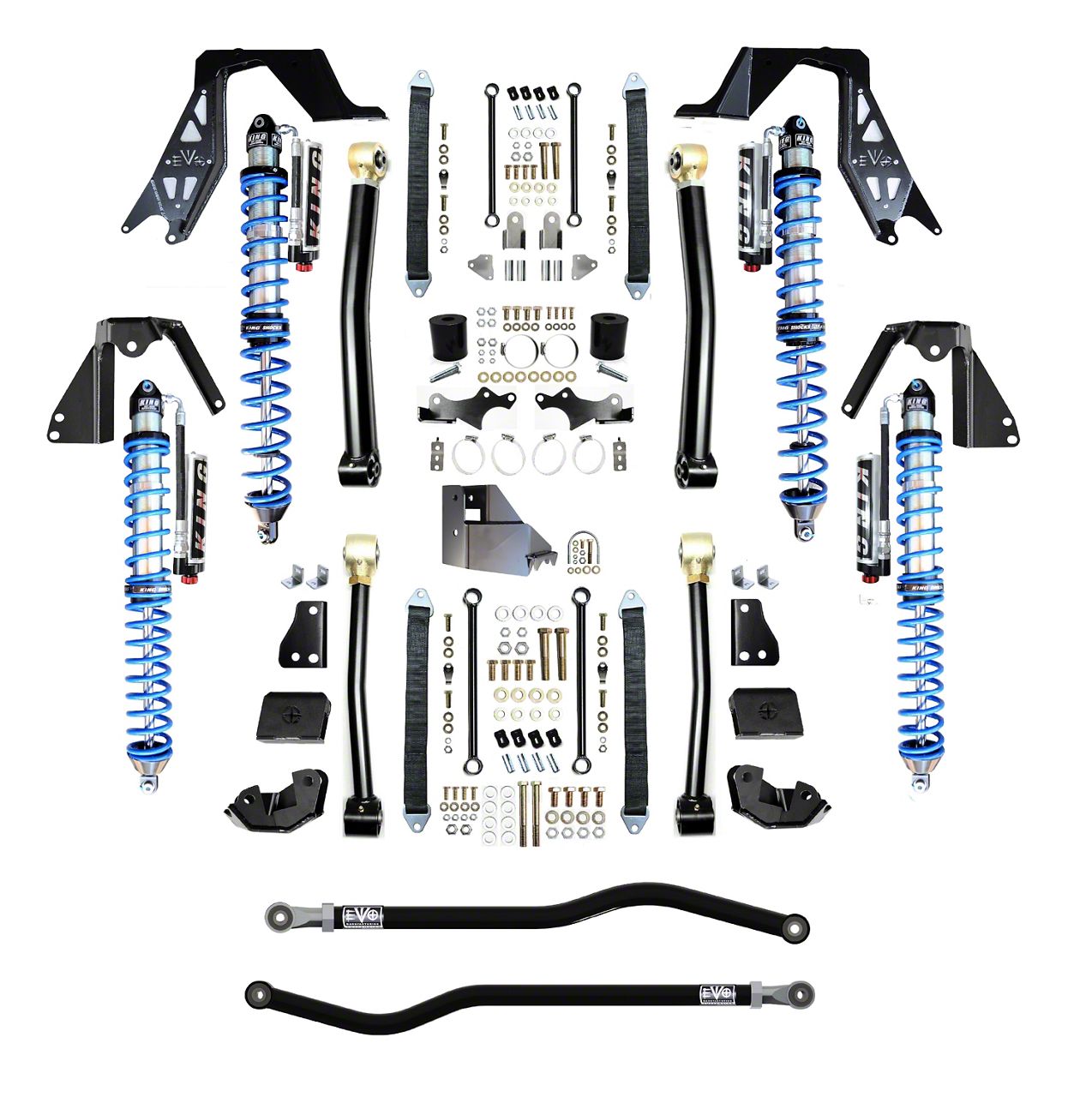 Application. This EVO Manufacturing 3 to 5-Inch Enforcer PRO Stage 3 Suspension Lift Kit with King Compression Adjuster Coil-Overs fits all 2018-2026 Jeep Wrangler JL 2-Door models.