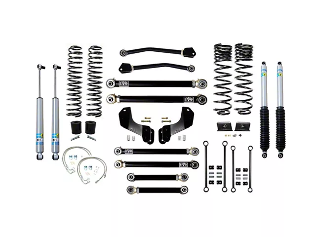 OVERLAND SYSTEM:The difference with EVO MFG Enforcer Overland systems vs EVO MFG Enforcer systems is the use of front Overland Control Arm Brackets. When lifting your vehicle your control arms at ride height have a steeper angle towards the floor which can have some negative effect/chop in ride quality. With the use of the included Overland Control Arm brackets we relocate the front control arm mounting locations at the frame. In doing this when lifted we maintain factory flatter control arm angles and while minimal, we alleviate much of the chop associated with lifting a Jeep giving even better and more improved ride quality. Also, in the use of Overland Drop Brackets we are able to engineer more performance into the front suspension to improve braking and driveline angles through suspension cycle. Both kits drive very well, the Overland Kits are better suited for less hard off-road crawling and more light off road and on road use.