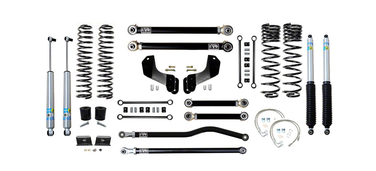Application. EVO Manufacturing 2.50-Inch Heavy Duty Enforcer Stage 3 Overland Suspension Lift Kit fits 2020-2025 3.6L Jeep Gladiator JT models, excluding Mojave.