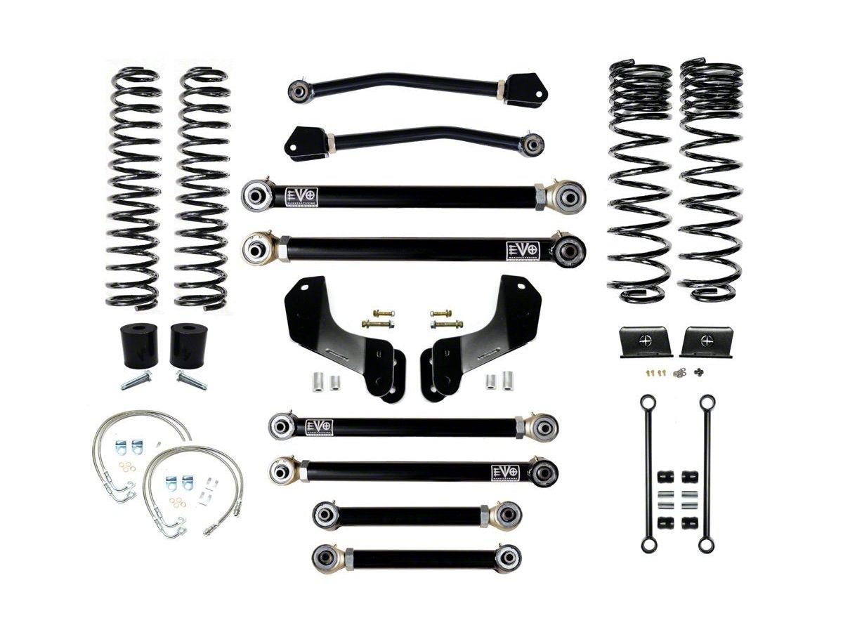 Installation. Putting this EVO Manufacturing 2.50-Inch Heavy Duty Enforcer Stage 4 Overland Suspension Lift Kit on your 3.6L Jeep Gladiator JT is easy and requires no drilling.