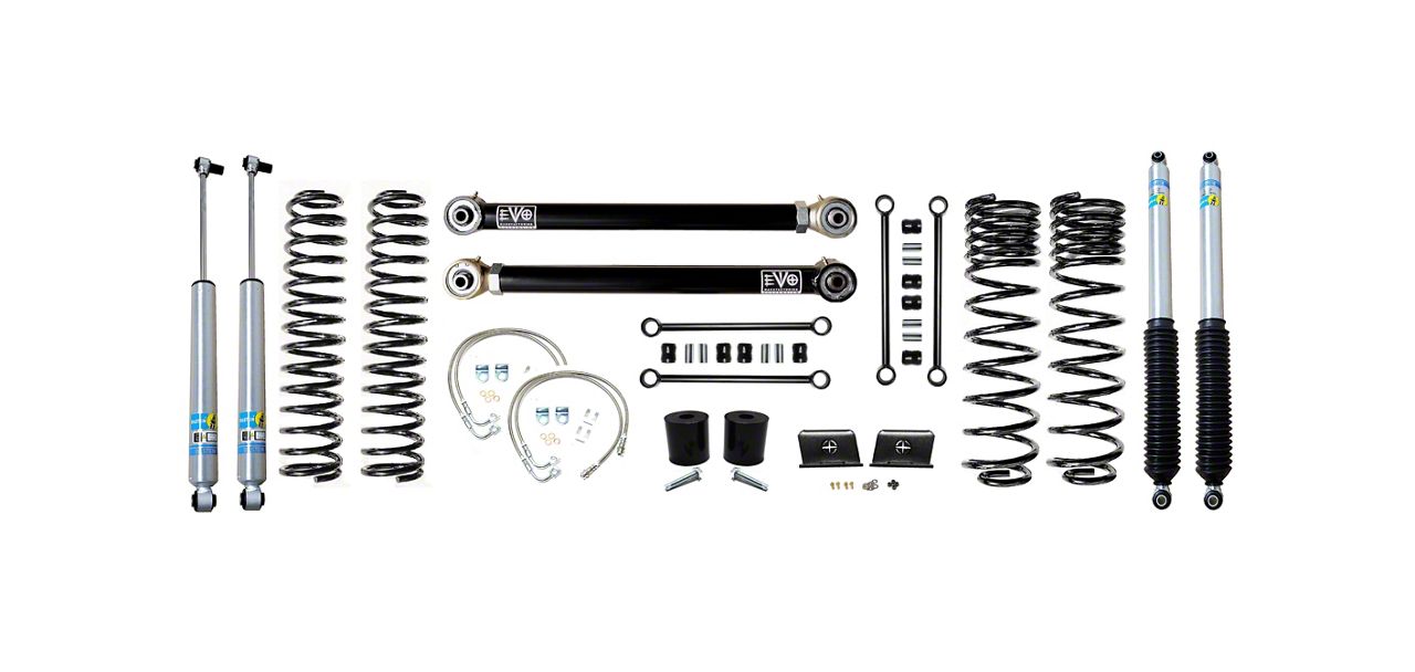 Application. This EVO Manufacturing 2.50-Inch Heavy Duty Enforcer Stage 2 Suspension Lift Kit with Bilstein Shocks fits all 2020-2026 3.6L Jeep Gladiator JT models, excluding Mojave.