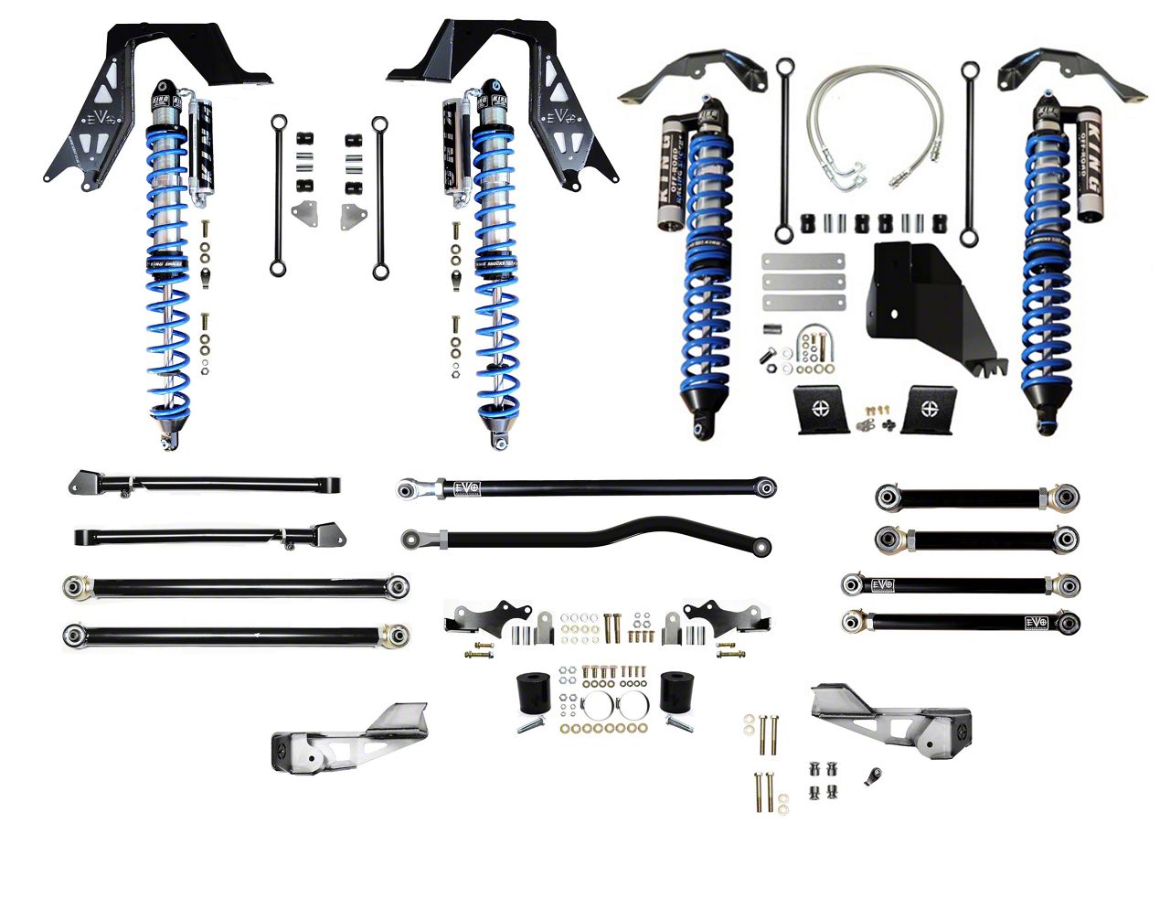 First-Rate Functionality. Transform your vehicle's off-road performance with the EVO Manufacturing 2.50-Inch Long Arm Suspension Kit. This kit comes with King 2.5 Coil-Overs that provide exceptional performance and durability. With up to 14 inches of vertical wheel travel, this suspension kit delivers a smoother and more comfortable ride even in the toughest terrain. It also allows for easy ride height adjustment without having to change any parts, making it a hassle-free solution for your vehicle. The EVO Manufacturing 2.50-Inch Long Arm Suspension Kit ensures superior ride quality, enhancing your vehicle's handling and overall off-road performance.