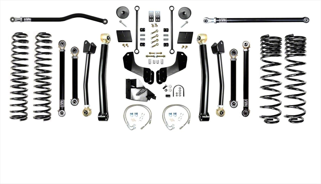 Application. This EVO Manufacturing 4.50-Inch Enforcer Stage 4 Overland Suspension Lift Kit with Front and Rear Track Bars is made for all 2020-2023 3.0L Ford EcoDiesel Jeep Gladiator JT Models.