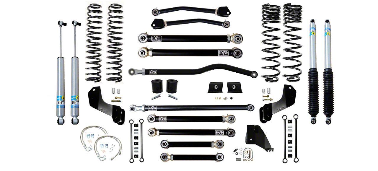 Application. An EVO Manufacturing 4.50-Inch Heavy Duty Enforcer Stage 4 Overland Suspension Lift Kit with Bilstein Shocks, Front and Rear Track Bars is constructed to accurately suit 2020-2026 3.6L Jeep Gladiator JTs, excluding Mojaves.