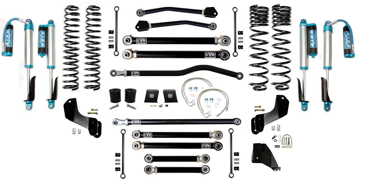 Application. This EVO Manufacturing 6.50-Inch Enforcer Stage 4 Overland Suspension Lift Kit with King 2.5 Shocks with Compression Adjusters and Front and Rear Track Bars is created to fit 2020-2026 3.6L Jeep Gladiator JT models.