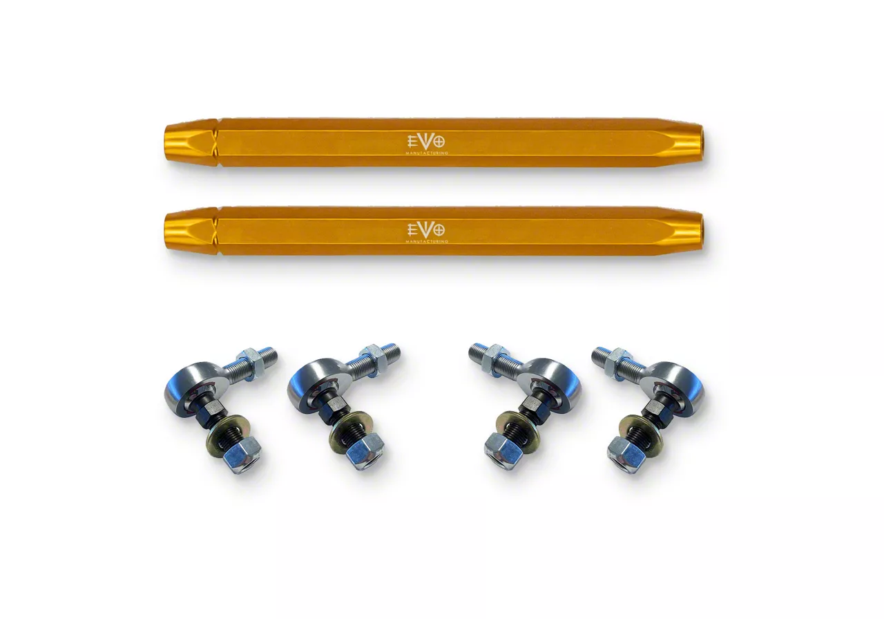 Performance. The EVO Manufacturing HD Front/Rear Sway Bar Links give your Jeep an added edge by enhancing stability and handling. These links are designed to significantly reduce body roll during cornering, offering a safer and more controlled driving experience.