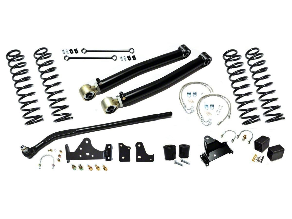 All stages include the EVO MFG Draglink Flip Kit, when lifting your JK 3” or greater, it is highly recommended to correct some of the steering geometry that has been altered with the lift. The EVO MFG JK Draglink Flip Kit does just that and more. Raises trackbar mounting location 3” at the axle to help correct roll center and steering angles of a lifted JK. Roll center is greatly improved giving better handling of the vehicle on and off-road Complete bolt-on design that gives greater strength to already prone to failure factory front trackbar bracket