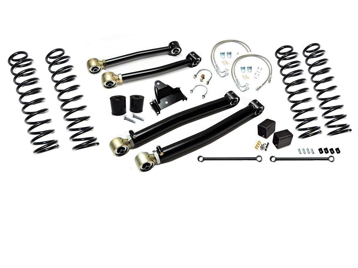 Complete Kit. This EVO Manufacturing 4-Inch Enforcer Stage 2 Suspension Lift Kit comes as a complete kit with stainless steel brake lines, front and rear control arms, trackbar brackets, bump stops, and swaybar links.