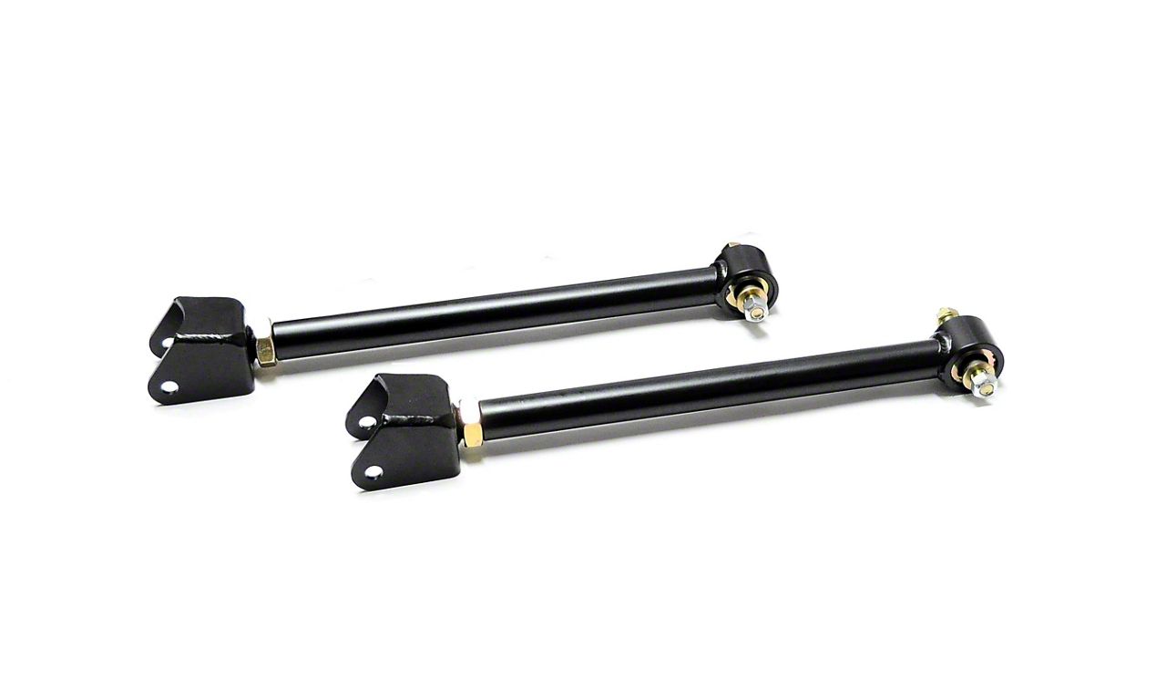 The JK factory control arms have proven themselves to be well made and will articulate quite far, they due have some drawbacks, lack adjustability and are known to eventually fail or bend under hard wheeling and time. The EVO MFG Enforcer front upper arms address this by being made from heavy wall DOM Steel Tubing, are all fully adjustable in length for fine tuning of suspension alignments and wheel positions. They utilize Currie Johnny Joints at the frame side of each control arm which are free moving joints with ample misalignment and angle, rebuildable and greaseable and do not give the resisantance and misalignment wear charactoristics of all bonded rubber. They offer a isolated construction for decreased transmission of road vibrations without the wear or binding associated with bonded rubber joints.