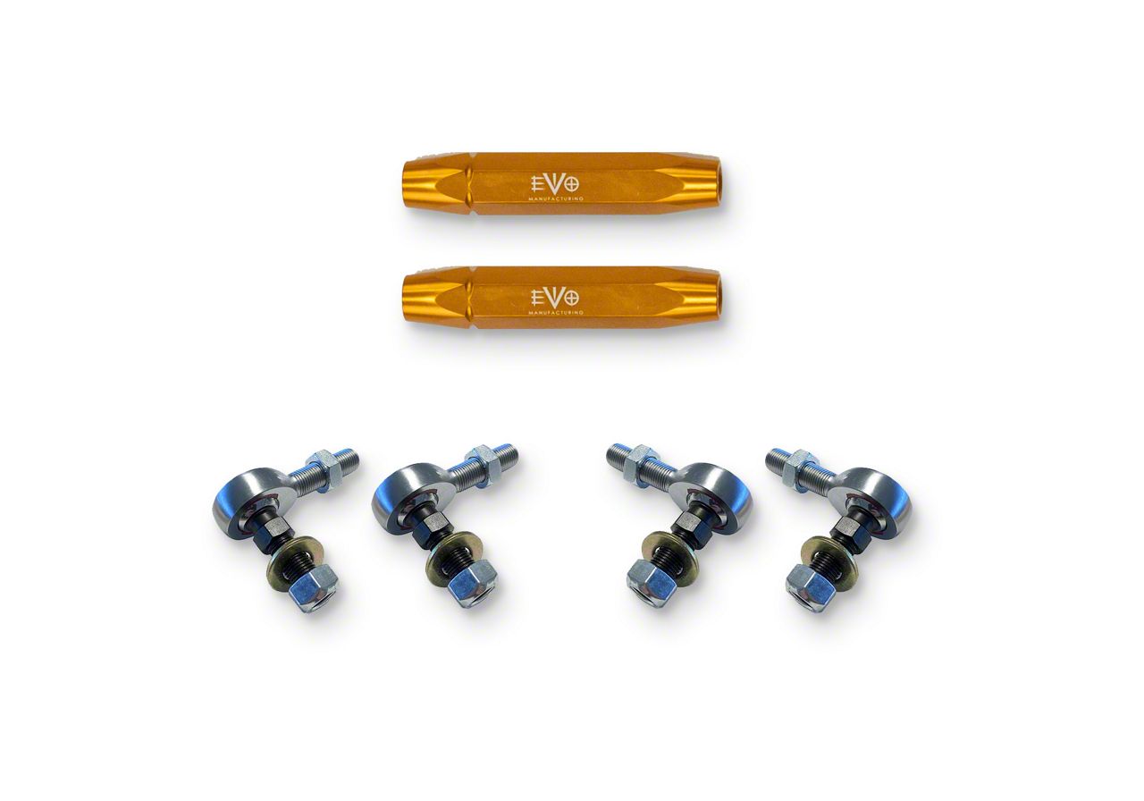 Installation. Putting these EVO Manufacturing HD Front/Rear Sway Bar Links on your ride is easy and requires no drilling.