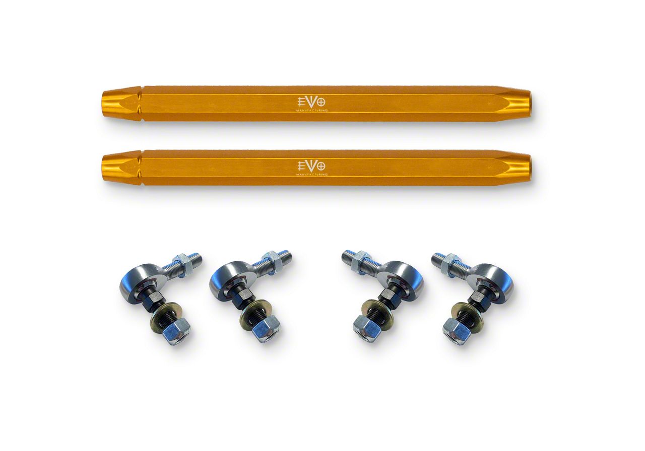 Robust Sway Bar Link Upgrade. The EVO Manufacturing HD Rear Sway Bar Links offer a heavy-duty solution for enhancing the stability and handling of your 2007-2018 Jeep Wrangler JK models. These links provide adjustable length, allowing for precise fitment and improved performance both on and off-road.
