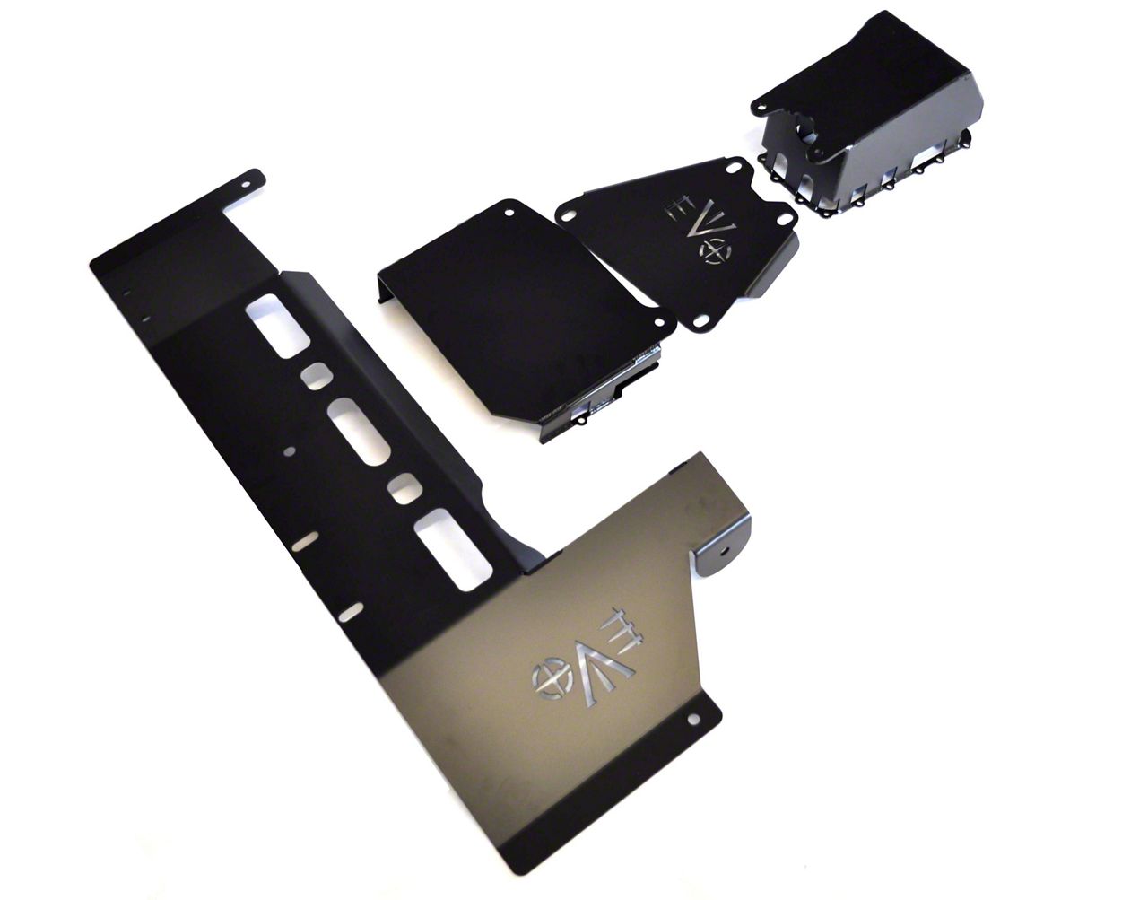 Robust Protection. The EVO Manufacturing ProTek Skid Plate System is designed to safeguard your Jeep Wrangler's undercarriage by bridging the gap between the oil pan skid and auto transmission skit. Its fully boxed design ensures protection from all sides while keeping critical components like the oil drain accessible.